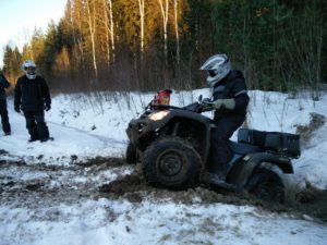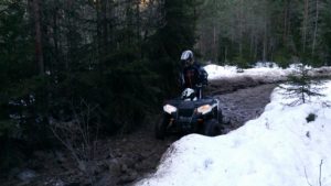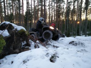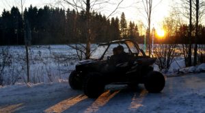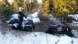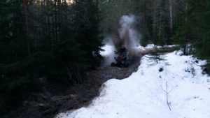 Yksi utv turbo Can-Ameista valitettavasti rikkoo vetoakselin, jos toisenkin jo alkumatkasta haastavassa nousussa ja kuski joutuu siirtymään toisen utv:n kyytiin vinssiapinan rooliin matkustajan paikalle. Muutoin päivä menee hyvin sotiemme puolustuslinjan maastoista nauttien yhtä ympäri pyöräytettyä Yamaha Raptoria lukuun ottamatta, mutta tässä ei kärsitty vahingoista niin henkilö puolella kuin kalusto puolellakaan, laite takaisin jaloilleen ja ajot jatkuvat.
